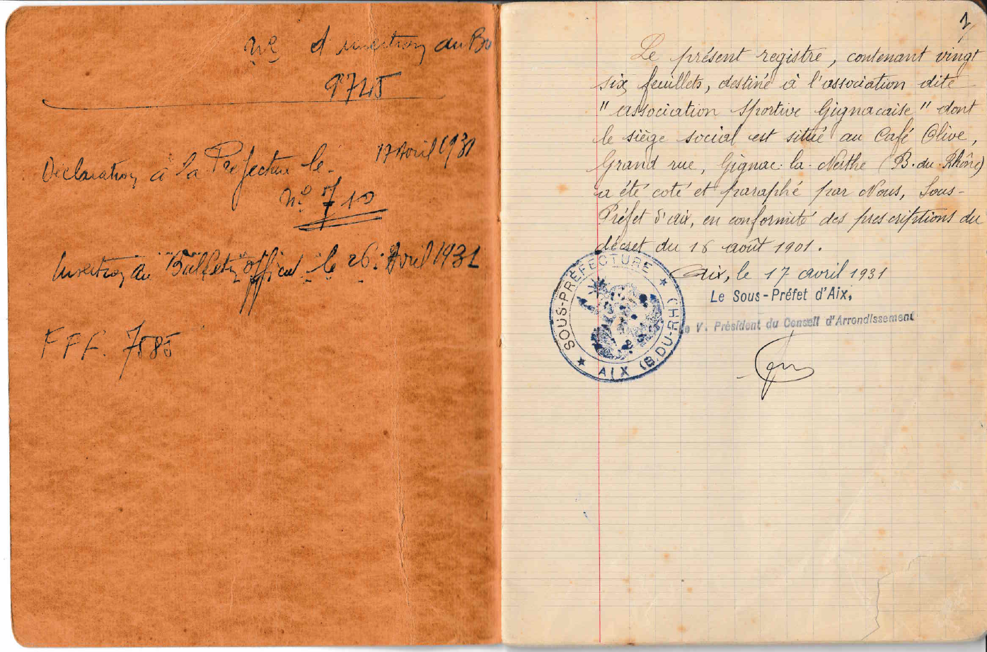 l'Acte de Naissance de l'AS Gigancaise. Quel club peut présenter un tel document