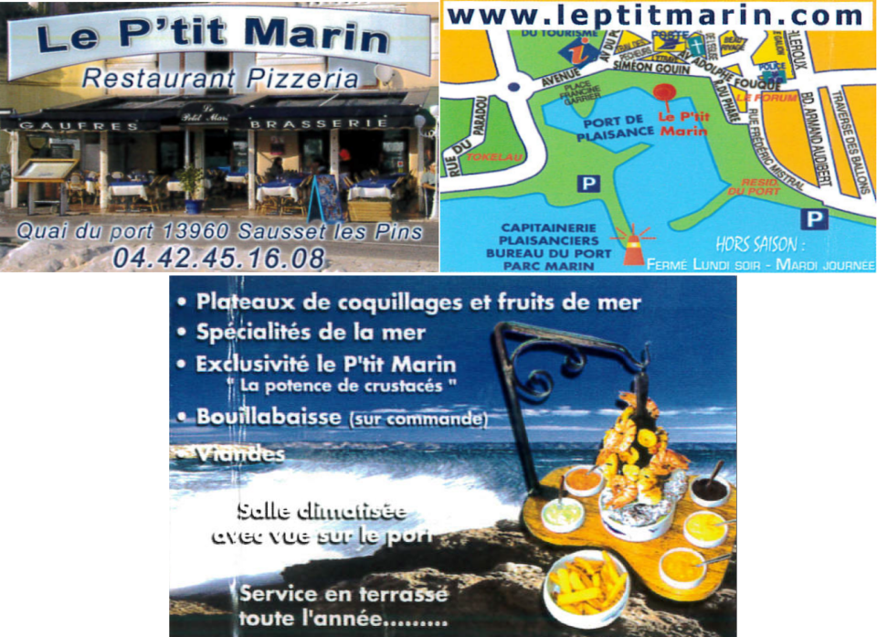 Accueil › Les partenaires › RESTAURANT LE P'TIT MARIN Tous les autres partenaires< | >RESTAURANT LE P'TIT MARIN