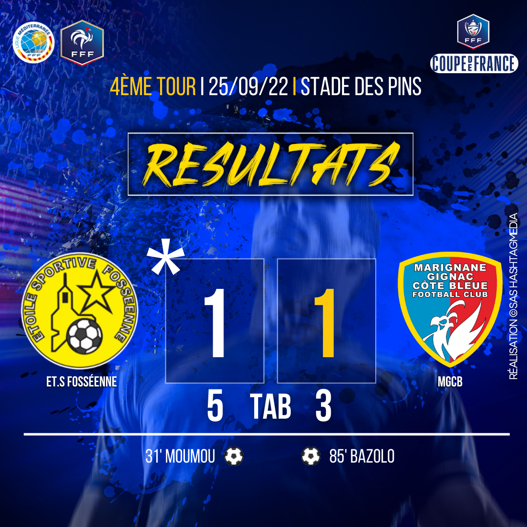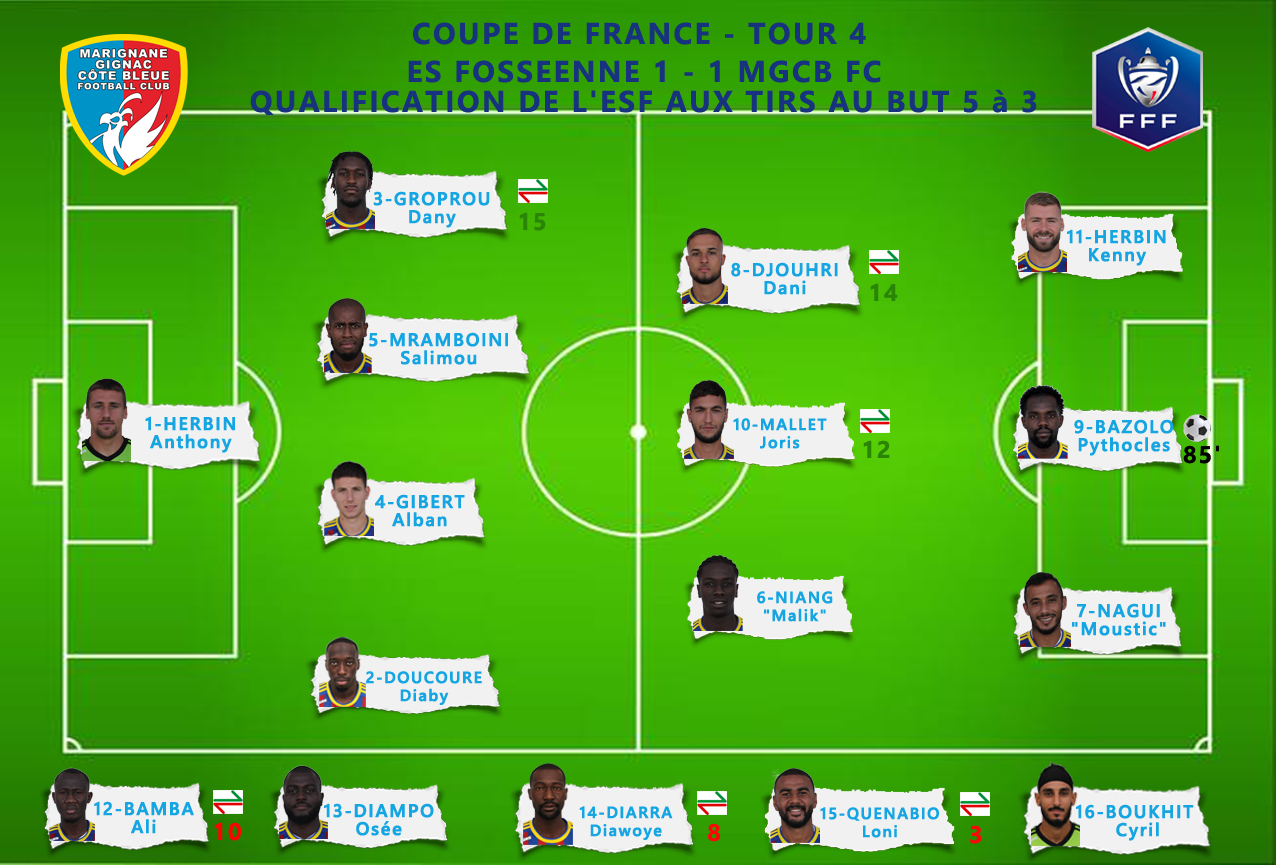 Après avoir été mené au score des la 31' sur un but de MOUMOU, c'est Pythocles BAZOLO qui à la 85' parvenait à égaliser. Vous pourrez lire (ici) le commentaire détaillé dans l'article de la Provence de Renaud BLAISE avec les tireurs de la séance fatale et la réaction de Salimou MRAMBOINI capitaine pour cette rencontre.