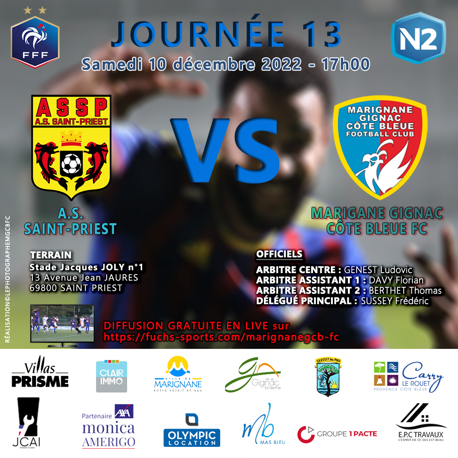 De plus notre hôte de ce soir, sur sa page Facebook évoque notre réception et l'on peut y lire "L'AS Saint-Priest reçoit ce samedi l'une des équipes les plus solides de ce début de championnat ! Marignane Gignac Cote bleue n'a perdu qu'un de ses onze matchs cette saison, avec un total de seulement sept buts encaissés" tandis que sur son site officiel on voit quelques mots sur notre dernier buteur "Kenny Herbin a délivré Marignane GCBFC la semaine dernière face à Alès en toute fin de match ! Le longiligne attaquant, qui a évolué quelques mois à l’ASSP la saison passée, revient d’une longue blessure et semble lui aussi, retrouver son niveau de jeu." , à noter que la saison dernière Kenny était déjà chez nous, petite confusion qui prouve qu'ils se méfient de notre venue.