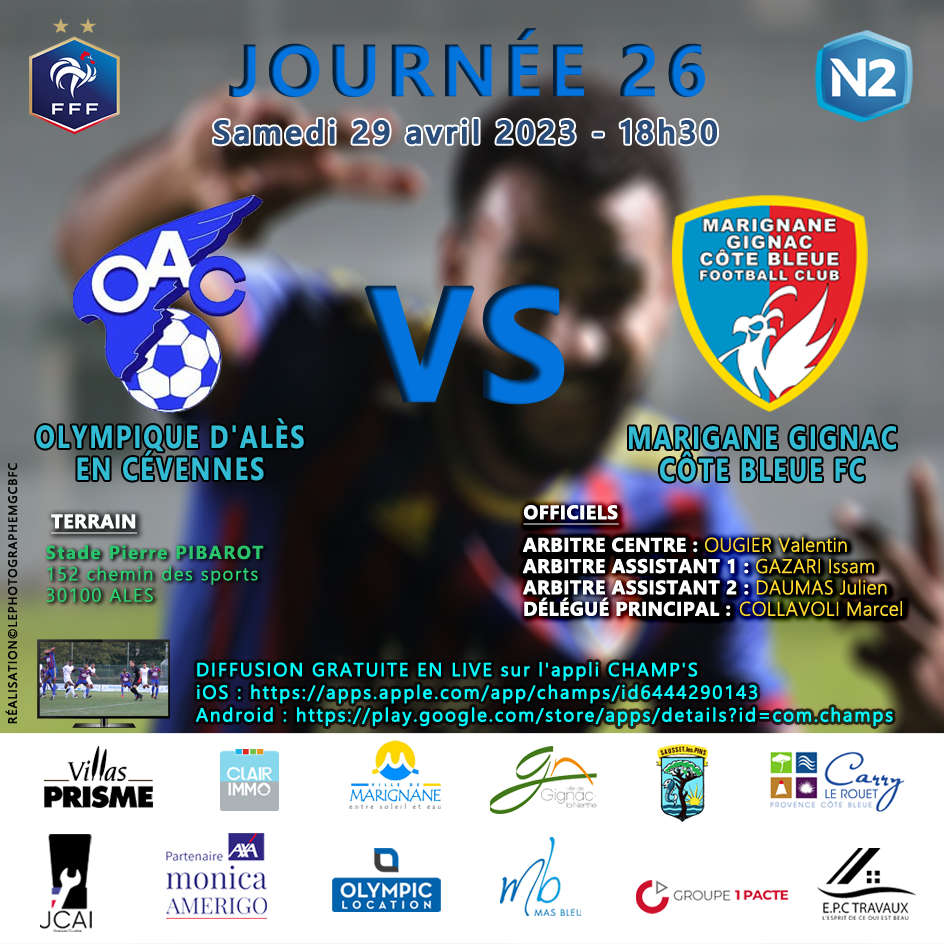 Ce samedi tous derrière nos petits écrans, téléphone ou tablette pour regarder le match en direct sur l'application gratuite CHAMP'S. Si vous ne l'avez pas encore téléchrgé rendez-vous sur le Google Play ou sur l'Apple strore dont voici les liens.