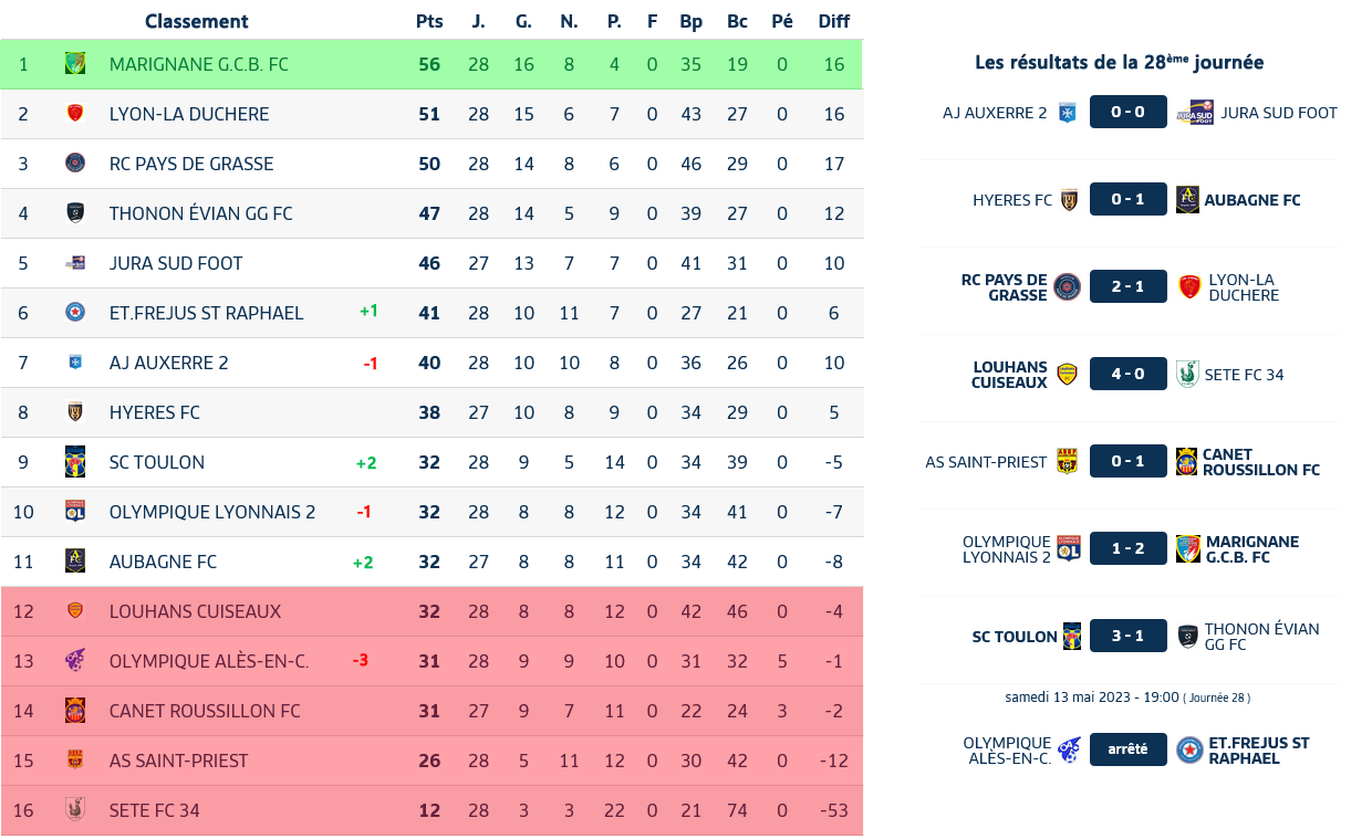 La prochaine journée sera très importante avec la venue de Toulon et nous vous espérons très nombreux pour venir encourager nos joueurs dans un stade SAINT EXUPERY plein à craquer et prêt à faire la fête.