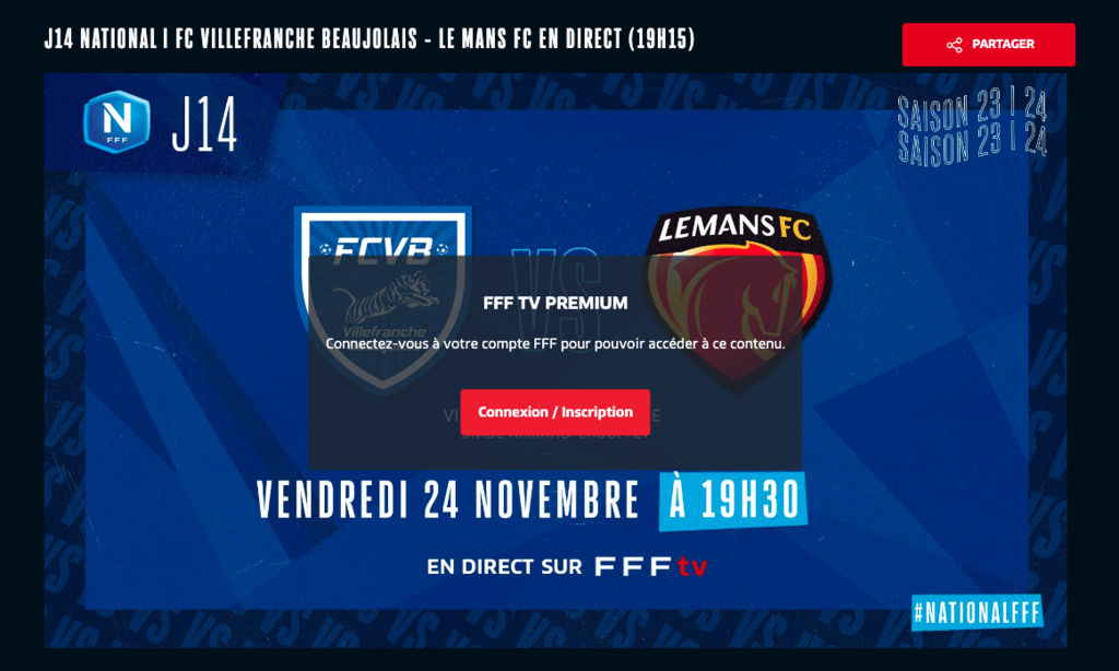 Pour répondre à une volonté d’harmonisation du processus de connexion à l’ensemble de ses services digitaux, la FFF nous informe qu’𝗮̀ 𝗽𝗮𝗿𝘁𝗶𝗿 𝗱𝘂 𝘃𝗲𝗻𝗱𝗿𝗲𝗱𝗶 𝟭𝗲𝗿 𝗱𝗲́𝗰𝗲𝗺𝗯𝗿𝗲 𝟮𝟬𝟮𝟯, il sera nécessaire de se connecter à son compte FFF ou de s’en créer un pour regarder les matches en direct sur FFFtv.