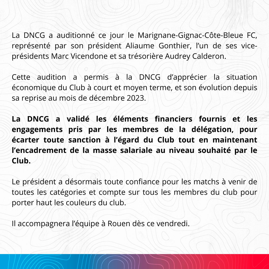 Accueil 2023-2024 News Passage devant la DNCG Toutes les news< | >Passage devant la DNCG Publié le 09 janvier 2024 Pas de sanction, maintien de l'encadrement de la masse salariale Partager surcommenterFacebookTwitter Commentaires Connectez-vous pour pouvoir participer aux commentaires.